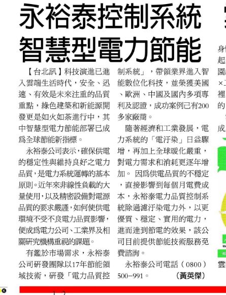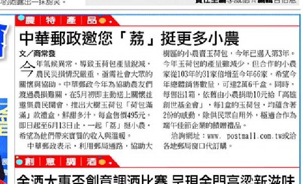 如您需要介紹貴公司的產品,或業務推廣,資訊發佈...等.可以由以下方式取得新聞稿見刊。提供一千字的圖文,我們會為您編輯一則約400字新聞稿件。新聞稿無法指定版面.見刊時間.區域,文字之聯絡方式一定會見刊,但圖片"不一定"能獲編輯部採用見刊。所見報之廣告一定在新聞頁面中,不會出現於"分類廣告"中。可以刊載的報紙:中時.聯合.工商.經濟.聯合晚報,民眾日報,台灣時報,新生報 / 擇一 報紙新聞稿費用為 5,000元/一天/一則/一報 (不含稅)如果您需要的是全國見報的廣告可以刊.聯合晚報、經濟日報、工商時報、新生報(聯合晚報見報時間較快工商及經濟較慢)將於3至21天內見刊(如發刊經濟日報,聯合報,時間約需要三週)如"未獲見刊"將無息退費。)以上如確認即可為您處理。